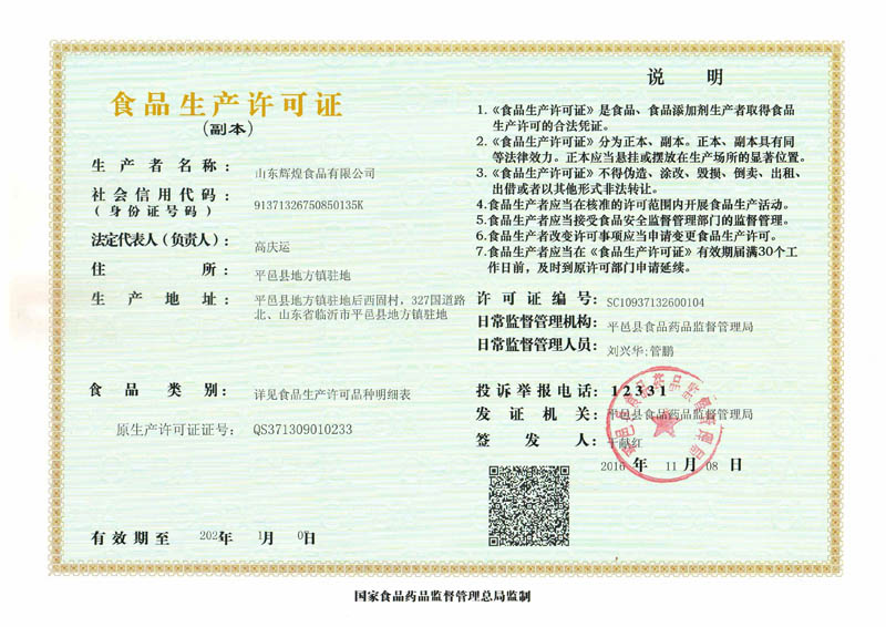 輝煌介紹,          山東輝煌食品有限公司始創(chuàng)于1998年,是一家集研發(fā)、生產(chǎn)、銷售、出口貿(mào)易為一體的現(xiàn)代化重點龍頭企業(yè)。公司以“互利共贏,基業(yè)長青”的經(jīng)營理念為指引,在不斷鞏固和發(fā)展罐頭產(chǎn)業(yè)的基礎上,已逐步成長為涉及金融、電商、酒店等產(chǎn)業(yè)的綜合性公司。 公司技術先進,裝備優(yōu)良,建有市級企業(yè)技術中心及臨沂市“果醬及水果罐頭加工工程實驗室“,2021年被認定為”山東省‘專精特新’中小企業(yè)“。產(chǎn)品在占領國內(nèi)市場的同時,遠銷歐、美、日、俄、蒙古等國家和地區(qū)。 公司始終堅持以市場為導向,以質(zhì)量求生存。先后通過了ISO、BRC、IFS等國際認證,被評為“消費者滿意單位”、 “最具競爭力中小企業(yè)·百強企業(yè)”,2014年被央視商城評為“中國好物種”,2018年山東省食安辦授予“食安山東·生產(chǎn)加工示范企業(yè)”,并先后獲得“省級守合同重信用企業(yè)”、“山東省著名商標”、“中國罐藏食品領先品牌”等榮譽稱號。 潮平兩岸闊,風正一帆懸。輝煌人正以堅定的信念、昂揚的斗志,秉承“創(chuàng)百年大品牌,造中國好罐頭”的宗旨,堅持“專注穩(wěn)健,務實高效”的企業(yè)作風,致力于“做中國罐頭行業(yè)持續(xù)領先企業(yè)”的輝煌愿景!